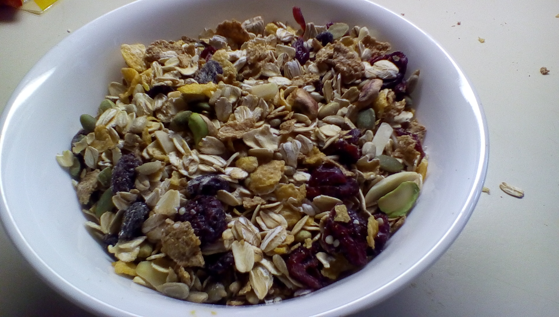 I am a fan of Muesli; not a fan of paying six dollars for a tiny box that lasts for three days. I am also annoyed at having to read the ingredients carefully to be sure I am not also buying two scoops of added sugar. If you haven’t had the pleasure of having muesli, don’t be afraid. It is simply a mix of nuts, grains, and dried fruit; its sweet (not always healthy) cousin is granola. If you’ve ever mixed two or more boxes of cereal together, you get the idea.