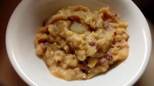 I found chourico at one store, manioc in another, had to drive clear across town and go to three stores to find samp (cracked dried hominy corn). And on top of that, I couldn’t find the right “sweet tasting potato”. I thought it was batata, but I might have bought the wrong kind or it was a bad one. It’s a Puerto Rican potato, but they don’t label it that way in the stores, dammit.