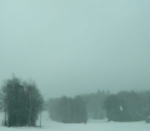 My skis skid on fresh powder and wind breaks my face. A presence pursues.